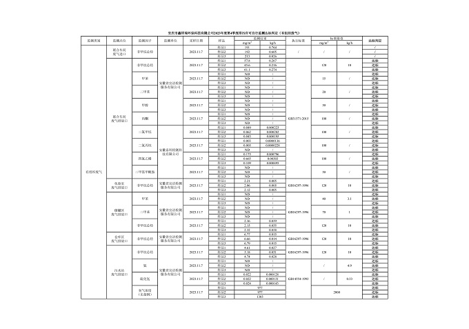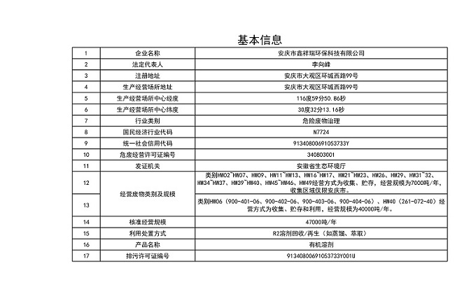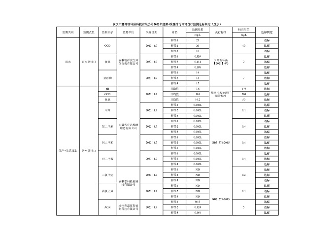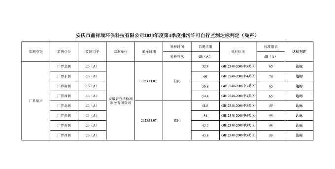 安慶市鑫祥瑞環保科技有限公司2023年第4季度排污許可自行監測公開
