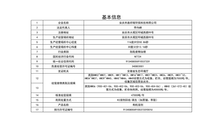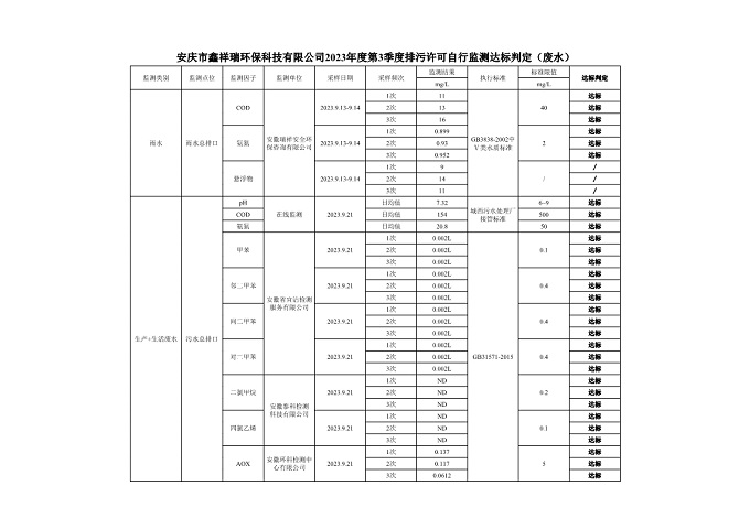 安慶市鑫祥瑞環(huán)保科技有限公司2023年第3季度排污許可自行監(jiān)測(cè)公開